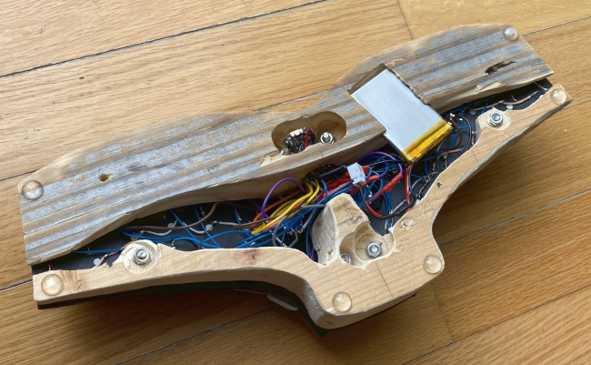 The second design process was a bit insane, basically I made a little drawing and designed it as I went. I hand-wired this one because why not and I wanted to make the body out of wood, mostly because I knew how and big 3D printed things generally look ugly and dumb.